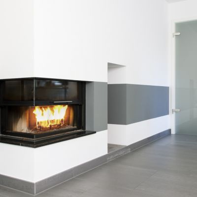 Einen besonderen Blickfang stellt der unterhalb des Treppenaufganges eingebaute Kamin dar.