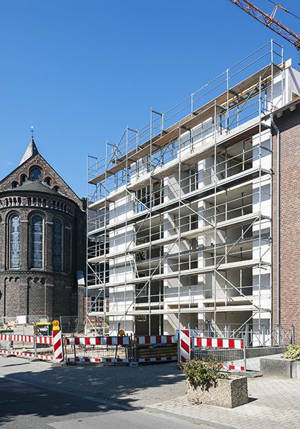 Im Rahmen der Planungsphase hat sich die unmittelbare Lage des Grundstückes zu einem denkmalgeschützen Gebäude als besondere Herausforderung gezeigt, da nach Abstimmung mit dem Stadtkonservator gewährleistet werden musste, dass der Blick auf die Kirche nicht beeinträchtigt wird.