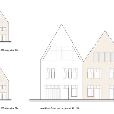 Das Konzept für die Bebauung nimmt Bezug auf die historischen Parzellengrenzen, die u. a. auch Vorgabe der Rahmenbedingungen waren. Des Weiteren sind bei der Ausarbeitung die Vorgaben aus der Denkmalverordnung und Gestaltungssatzung berücksichtigt worden.