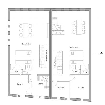 Der Gebäudekomplex besteht im Prinzip aus zwei Wohnhäusern sowie einem Ladenlokal im Erdgeschoss.